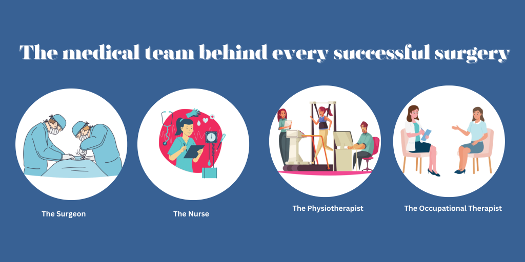 Post-operative care for orthopaedic surgery involves a multidisciplinary team of healthcare professionals collaborating to provide comprehensive care and support throughout recovery. Here are some of the personnel who may be involved in post-op care: