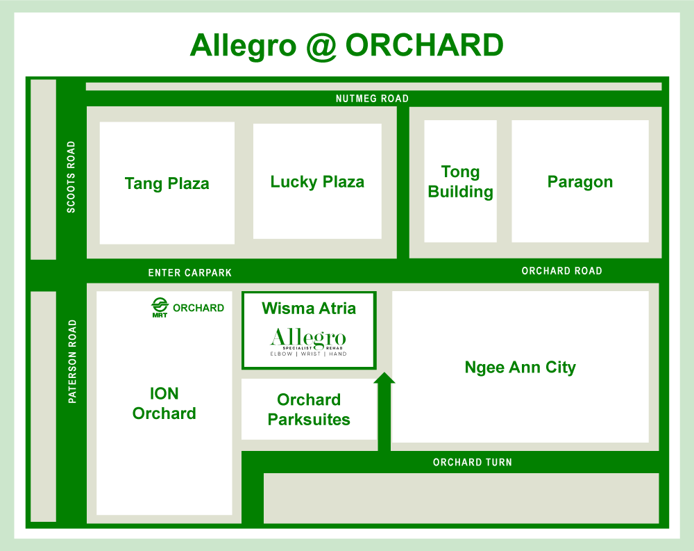 If you’re looking for a specialised Hand & Upper limb physical rehabilitation in Orchard area, our alliance Allegro @Orchard’s certified Hand Occupational Therapists provide comprehensive and leading treatment for hand, wrist, arm and elbow injuries or conditions, including post-surgery rehabilitation. Our team will work with you to create an individualised program to return you to work, life and athletics as soon as possible.